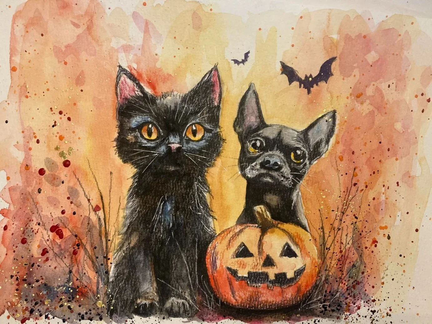Themed watercolor pet portraits! Halloween & Christmas